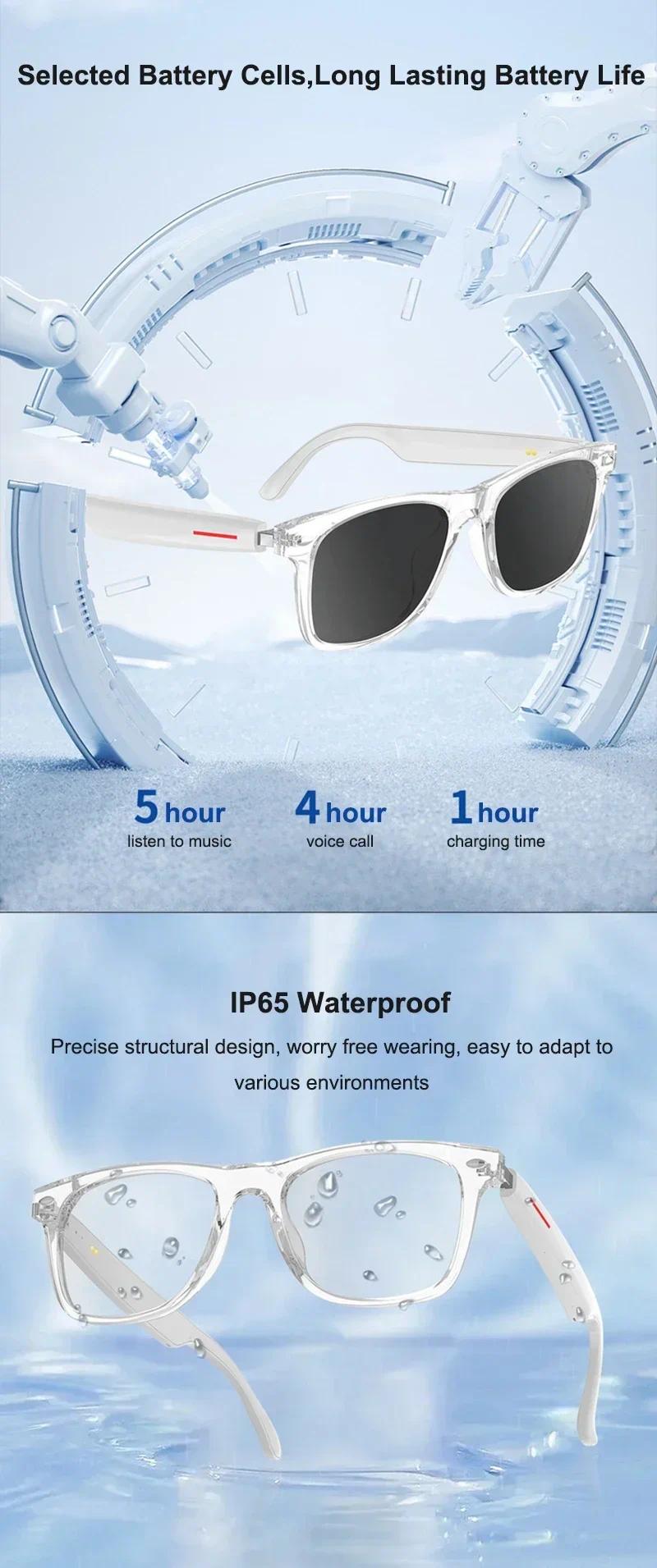 Features: * Real-time translation: Smart bluetooth translation glasses, automatically identify language types, and easily translate 144 languages. * Automatic pairing: No operation required, the temples can be easily paired automatically, remotely take photos, bluetooth audio calls, and wake up voice assistants. * Smart touch: The temples are equipped with touch sensors, and you can complete one-click translation conversations, answer calls, play music, play games, and other commands with just a light touch. * bluetooth calls: Built-in high-sensitivity microphones and noise reduction technology, you can answer, dial, hang up, and reject calls by tapping. * Voice control: AI intelligent voice dialogue function, just say a word, you can solve questions in work, study, and life, and easily help you find inspiration and answers. * IP65 waterproof: Precision structural design, worry-free wearing, easily adapt to various environments. Specification: : Smart Translation bluetooth Glasses Material: PC Battery capacity: 80+80 mAh Listening to music: 5 hours Language call: 4 hours Charging time: 1 hour Waterproof: IP65 Size: 16.6*6*5.5cm Color: as show Packing included: 1 * Smart Translation bluetooth Glasses 1 * Charging Cable Note: 1. Due to manual measurements and slight color variations, please allow 1-3 cm (0.4-1.18 inches) difference to suit different display settings. 2. Due to the light and screen difference, the item's color may be slightly different from the pictures. Please understand.
