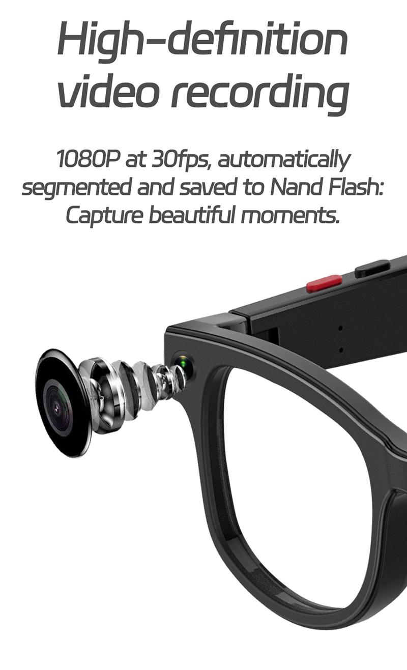Functions: Camera function (photo taking & video recording), WIFI image transmission, sound recording, AI translation (support 100+ languages), AI photo recognition, AI intelligent question & answer interaction, wireless call (answer & reject), voice assistant (AI voice wake-up), built-in headphones & speaker (stereo sound), music playback, anti blue light, UV protection.