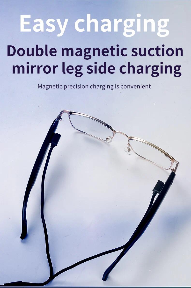 Main control chip:AB5656C Battery:55mAh+55mAh Charging way:Magnetic charging Bluetooth version:BLE5.4 Bluetooth protocol:A2DP,HFP Mode of operation:Touch Transmission distance    :10M Waterproof level    :Life waterproof Material    :ABS+PC+Metal Voltage:DC5V Electric current:50mA*2 Play current (max volume)    :22mA Standby current:1mA Lens Material:PC coating Size    :162*68*50mm Weight:Glasses 33g + packing box 110g = 143g Language:English  Packing:Smart Glasses charging cable, storage pouch, cleaning cloth, user manual, packaging box